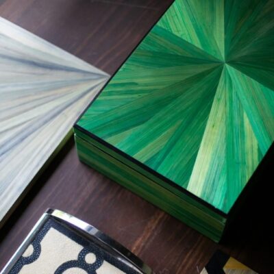 Aesthetic appeal of traditional straw marquetry with the strength and resilience of Duropolymer, creating a sustainable and visually captivating decorative surface.