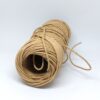 A 100% virgin paper fiber cord, which makes it biodegradable, recyclable, compostable and environmentally sustainable. It is a hydrophobic material (ability to repel water), resistant to humid environments and with high UV resistance, which makes it suitable for adverse climates and outdoor use. It offers medium tensile strength and low elasticity, and high tear and scratch resistance, making it an ideal eco-friendly choice for applications that do not require high flexibility or extreme strength. This material is offered in 3 product ranges with different levels of strength, adapting to various needs without compromising its environmental qualities. Available strengths are 6,7 kgf for 1,1 mm rope, 9,7 kgf for 1,4 mm rope and 12,8 kgf strength for 1,5 mm rope. It is a versatile material that can be used in a variety of sectors. Its main applications include agriculture, ideal for tying and holding plants; furniture decoration and manufacturing, perfect for creating furniture, such as chairs, with a natural and resistant finish; and the world of packaging and crafts, an excellent choice for wrapping packages and craft projects.