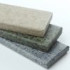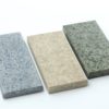 100% natural stone-like material made entirely from fish scales, a by-product of the fishing industry. The scales are collected in France from sustainably managed stocks of sardines or salmons. The sardines are caught in the Atlantic Ocean, off the coast of Brittany and the salmon scales come from the fish bred in the fresh waters of Scotland and Norway. With the company’s patented process, the company extracts the biopolymer from the scales and is recombined with the mineral of the scales. The process produces a stone-like material that is harmless to the environment. After the scales are collected, they are reduced to a fine powder and combined with the biopolymer. The material is then produced through a compression process to form sheets. The material contains no chemical additives, plastic or artificial glue and is VOC and formaldehyde free. It has good fire resistance (European level M1) and scratch resistance and similar mechanical properties to MDF and concrete. The company can recycle its production waste into new material and will collect and recycle post-consumer waste when possible. The material was designed to be ocean-friendly and will degrade rapidly in a marine environment. The manufacturing process requires low energy and water consumption. The material can be bonded using its own resin for glue-less bonding. It can be further processed using conventional wood tooling such as saws, spindles, CNC, and sanding machines. There are currently four colors available, but many different colors and patterns can be produced. The material is available in various dimensions and finishes including matte, satin and glossy. The maximum standard dimensions are 300 x 300 mm (11.8 x 11.8 in) in a thickness from 8 to 20 mm (0.31 to 0.79 mm). Each tile has a unique stone-like pattern. It is further protected with a clear lacquer or varnish. It is considered non-flammable (Norm NF EN ISO 11925-2) and has also been awarded the solar impulse label for future sustainable solutions. Applications include interior decoration for residential and commercial spaces.